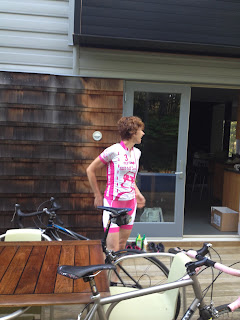 Yesterday I biked 65 miles ( strava says 61 - b/c I accidentally shut off the garmin by accident at one point) - it wasn't a beach day so I spent the whole afternoon in a post ride stooper watching the olympics and laying around. Then went to my BFFs house - she made me cake and we munched on fresh mozzarella and tomatoes... yum! Kept it very low key - the best part of the day was spending 4.5 hours on the bike without having to be anywhere or worry about work! pure heaven. -